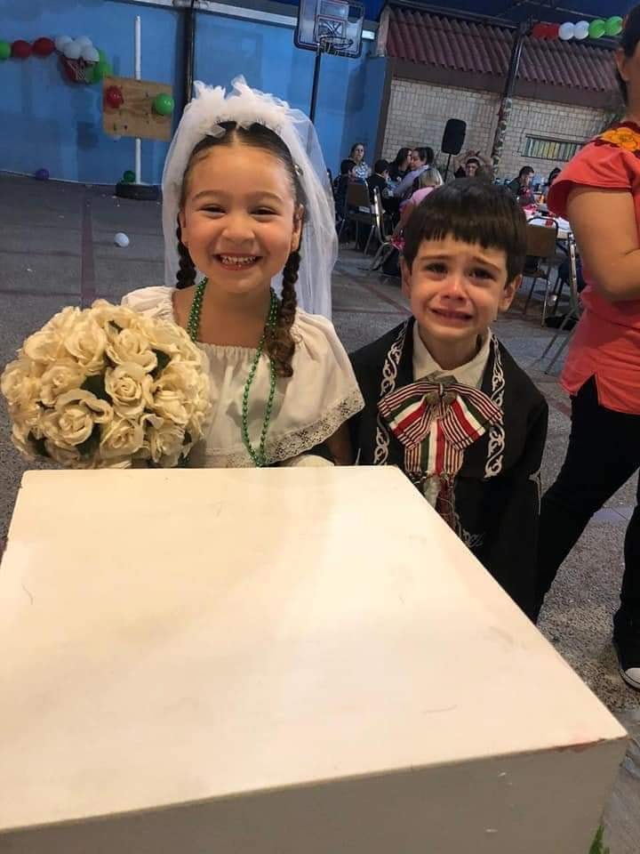 A través de redes sociales, comenzó a circular una publicación que se volvió viral. En las imágenes compartidas en Facebook se observa a dos pequeños contrayendo ‘matrimonio’ en una kermés, sin embargo, la expresión en el rostro del pequeño conmovió a más de un usuario.