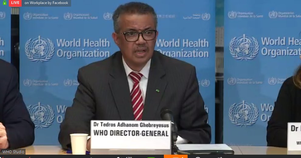 “Si los países detectan, prueban, tratan, aíslan, rastrean y movilizan a su gente en la respuesta, aquellos con un puñado de nuevos casos de coronavirus pueden evitar que esos casos se conviertan en grupos, y esos grupos se conviertan en transmisión comunitaria, dijo este miércoles el director general de la OMS, Tedros Adhanom Ghebreyesus. Después de decir que el brote puede caracterizarse como una pandemia.