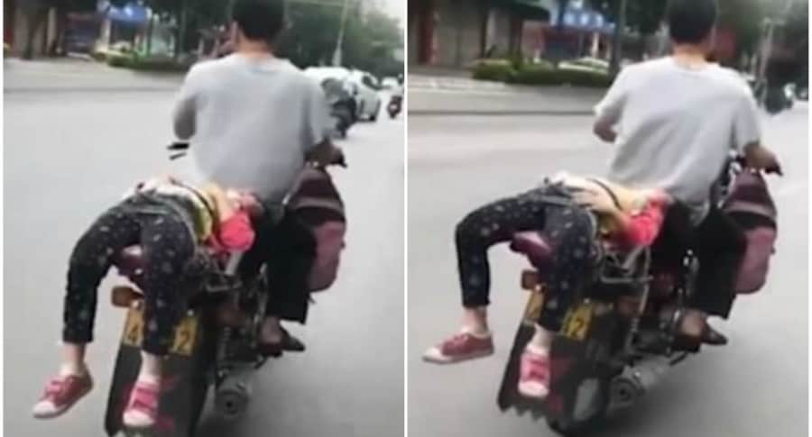 En el video en cuestión, se puede ver al hombre ató a su hija boca arriba en la parte trasera de la moto, con las piernas descolgadas, mientras él manejaba sin caso rumbo a la escuela.
