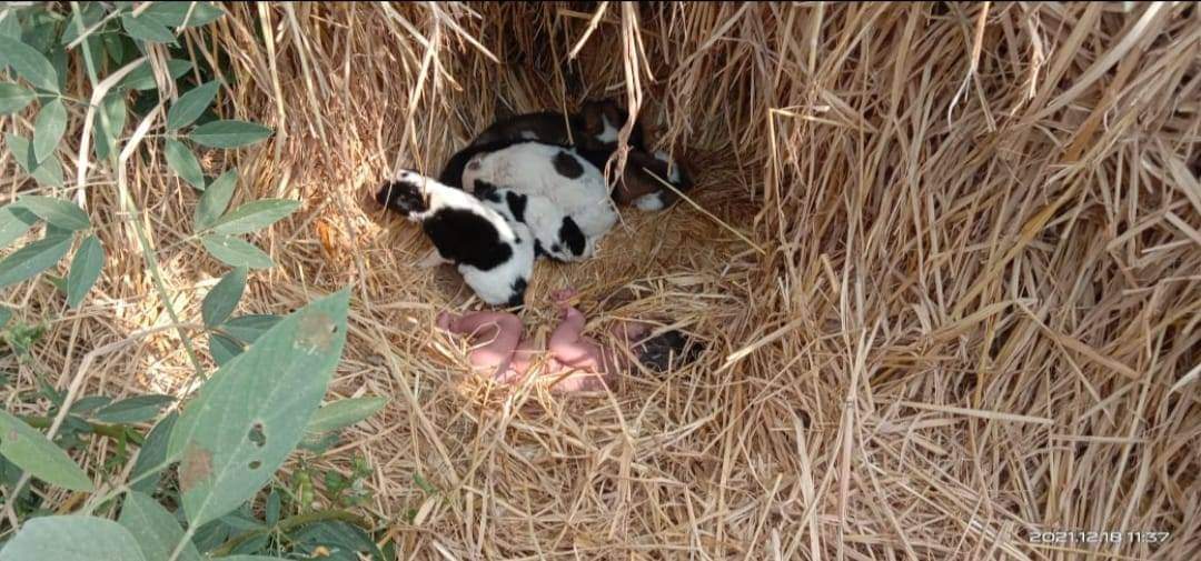 Una perrita y sus cachorritos protegieron a una bebé recién nacida que fue abandonada en el campo y se convirtieron en héroes.