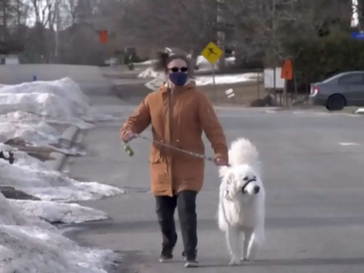 Un perrito llamado Clover está siendo aclamado como un héroe en Canadá por ayudar a su dueña, Haley Moore, durante una emergencia médica en un paseo.