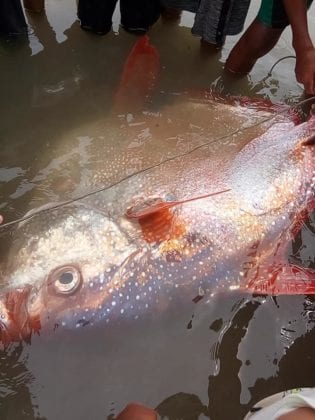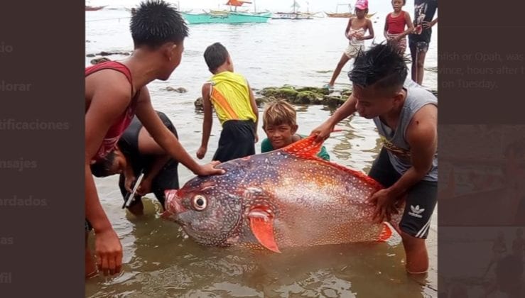 Pescadores de la isla de Tubabao lograron capturar a un enorme ‘Lampris guttatus’, conocido como pez luna real, después de un terremoto de magnitud 6.6 que se registró el martes pasado en la provincia filipina de Masbate.