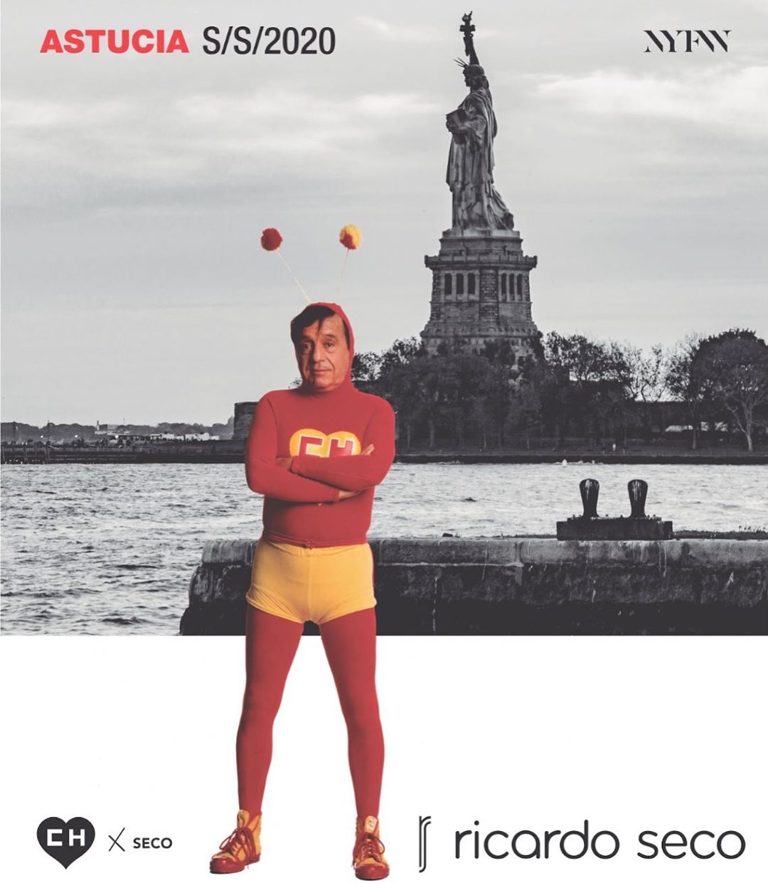 Para esta colección inspirada en el “Chapulín Colorado“, Ricardo Seco trabajó de la mano con el grupo “Chespirito”, que mantiene los derechos del personaje. Así lograron “reinterpretan los gráficos del Chapulín como el chipote chillón, las antenitas de vinil y las pastillas de chiquitolina“, con el estilo urbano y deportivo.