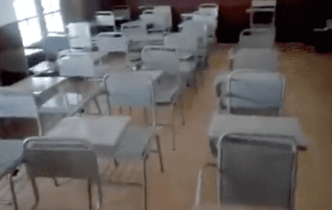 Un profesor de literatura hace una grabación dentro de un aula cuando las butacas se comienzan a mover. ¡Tremendo susto que se llevó el profesor!