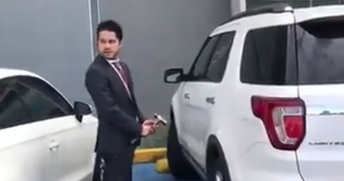 En el video se aprecia cómo un presunto guarura saca un martillo y golpea el vidrio de un vehículo que recién se estacionó.
