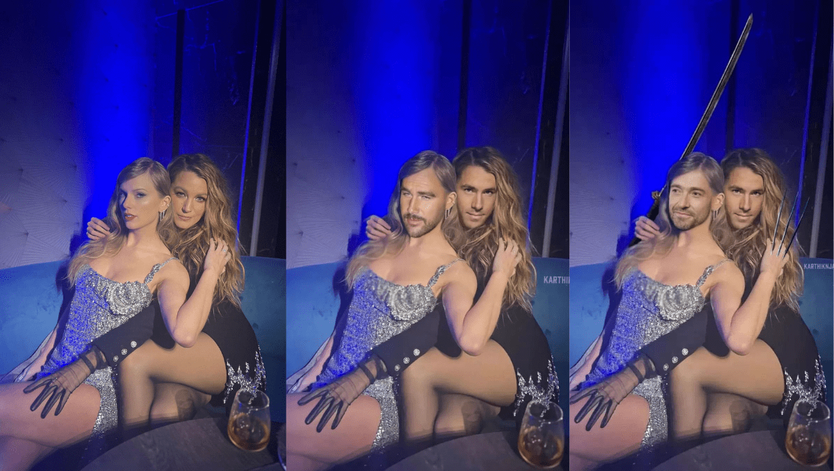 Junto a las fotos en la galería hay una imagen donde aparecen abrazadas Blake y Taylor, donde vuelven a demostrar, una vez más, su gran amistad. Imagen que Ryan Reynolds ha decidido “recrear” a su estilo cambiando la cara de Blake por la suya y sustituyendo a Taylor Swift por la cara de su novio Travis Kelce, jugador de los Kansas City de la NFL.