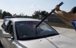 En la grabación se observa al novio de esta joven y sus amigos destruyendo con un martillo, un tubo y pintura roja en aerosol el coche. Los chicos dejan el auto completamente arruinado, le dan patadas, vuelan los vidrios y brincan sobre este.