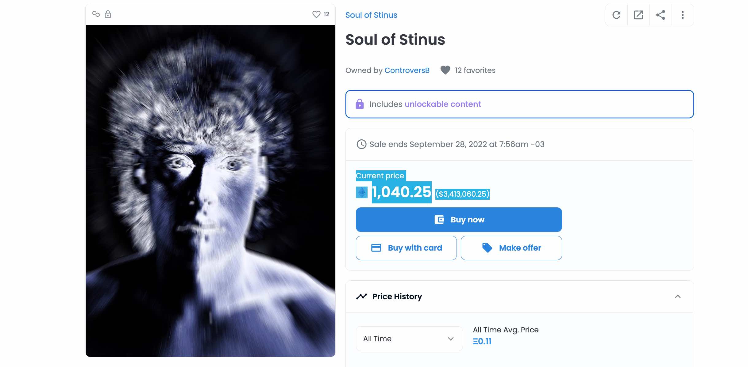 La propuesta fue tan original que el precio ya alcanza los mil ethers, eso se traduce en más de 3.4 millones de dólares.