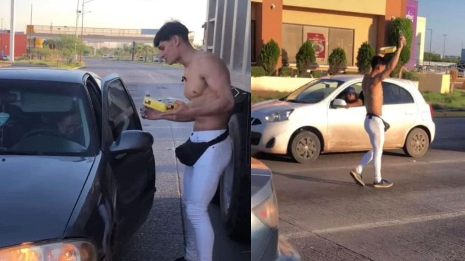 De acuerdo con medios locales, el joven sale a las calles sin camisa para presumir su “six pack” y llamar la atención de las conductoras, quienes han sido sus principales clientas. Además, también utiliza pantalones muy ajustados para destacarse entre los demás vendedores.