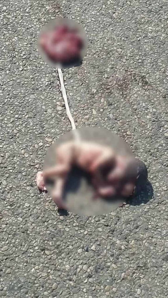 Tabasco.- Una foto indignó a las redes sociales, en donde se aprecia a un feto tirado, aún con el cordón umbilical, en una carretera de Tabasco.