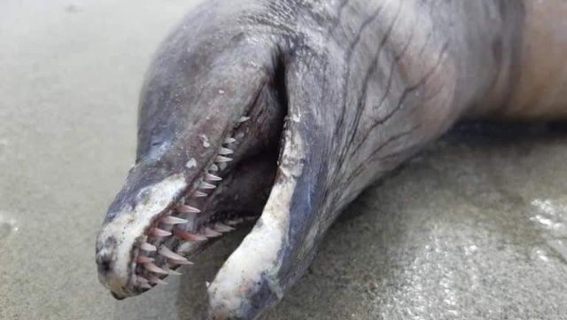 El animal que fue encontrado el fin de semana en una playa ubicada a 20 kilómetros de Puerto Vallarta en Jalisco, y provocó gran asombro por su extraña apariencia, y es que aunque es parecido a un delfín, posee caractarísticas que lo diferencian de este.