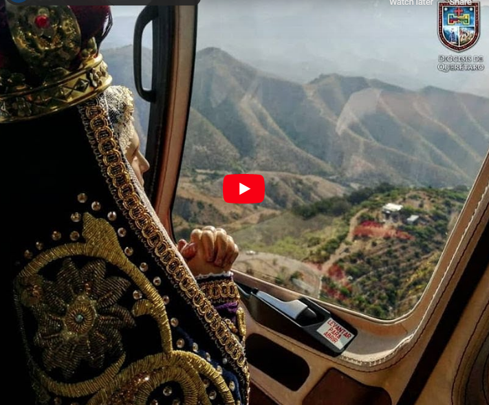 Junto a una imagen de la Virgen de los Dolores de Soriano y el “Santísimo Sacramento”, el vicario general de la Diócesis de Querétaro, José Martín Lara Becerril voló sobre el estado.