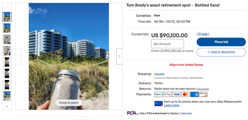 Lo más sorprendente no es la venta de este artículo, sino el hecho de que la subasta ya va cerca de los 100 mil dólares, por lo que si hay interesados en adquirir este peculiar objeto.