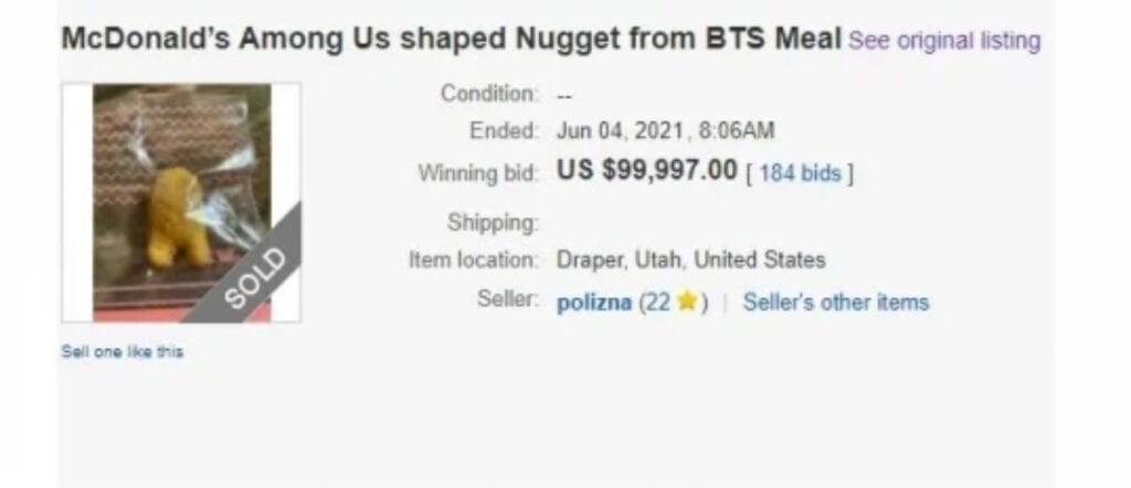 Se vende nugget con forma de ‘Among Us’ a través de una subasta en eBay que duró alrededor de una semana.