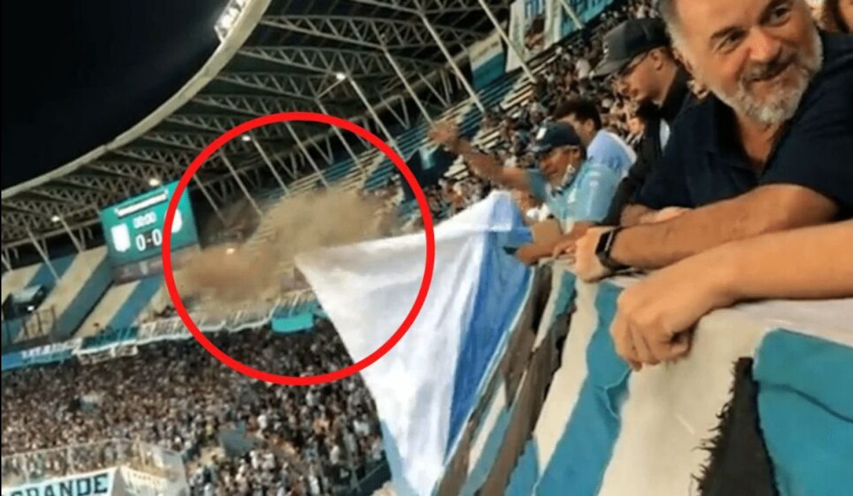 En las imágenes se observa cómo un fanático esparció las cenizas en plena tribuna del Estadio del “Cilindro” al inicio del partido al grito de “Esto es Racing, loco”, pues consideraron que los restos del fallecido deberían estst en el campo del club de sus amores.