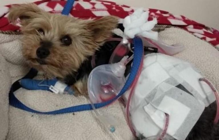 Macy, la pequeña perrita que no mide más de 15 centímetros y apeas pesa unos pocos kilogramos, no dudó en enfrentarse al coyote que era 5 veces más grande que ella y que le propinó varias heridas graves, entre ellas una dentellada por la que sigue en cuidados intensivos.