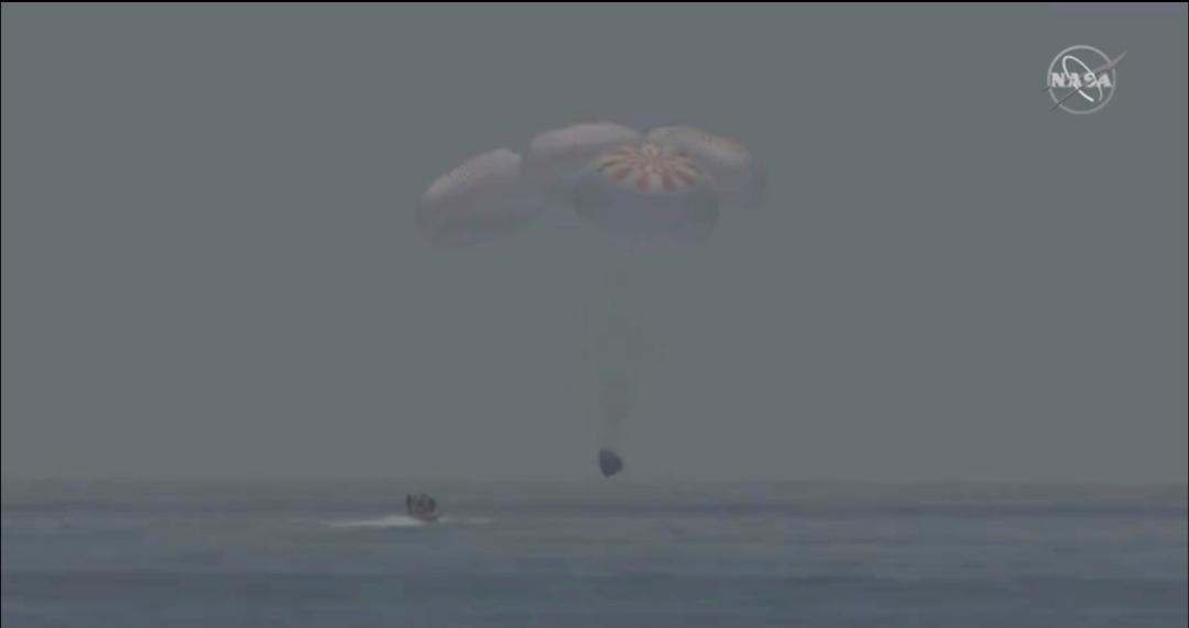 Este video de la NASA muestra cuando el SpaceX ya se encuentra en el agua.