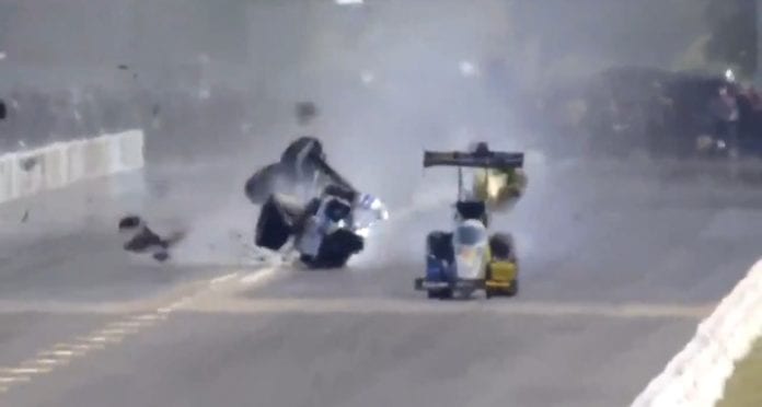 Durante la carrera de aceleración estadounidense NHRA Midwest Nationals, el pasado domingo, el coche de Leah se desmoronó en un impactante accidente, y para asombro de todos, no causó víctimas y ni aun lesiones a la piloto, Leah Pruett.