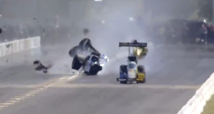 Dicho accidente ocurrió unos segundos después del arranque, cuando el auto iba a más de 418 km/h. A esa velocidad se desvió, salió despegado de la pista y se partió en varios pedazos en el aire.