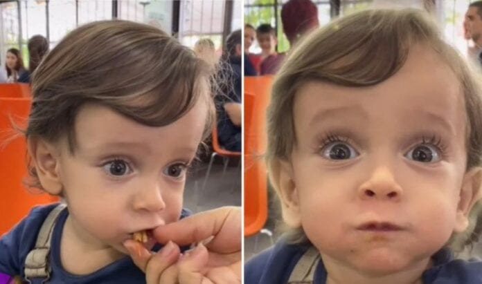 En las imágenes aparece el bebé mientras estaba distraído en un restaurante, pero es ‘abordado’ por un pedazo del taco al pastor que una persona le da a comer. Cuando lo tiene un la boca voltea a ver el plato de comida para ver de qué platillo se trata.