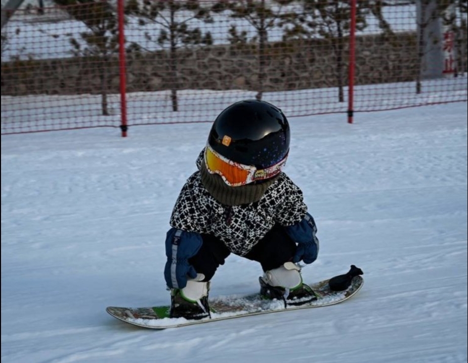 Una bebé con sólo 11 meses de edad y su tabla de snowboard, ha causado sensación en China, lugar que acogerá los Juegos Olímpicos de Invierno de Pekín.