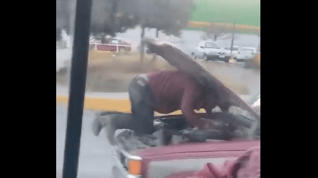 VIDEO: Captan a mecánico reparando camioneta en pleno movimiento en una calle en Saltillo