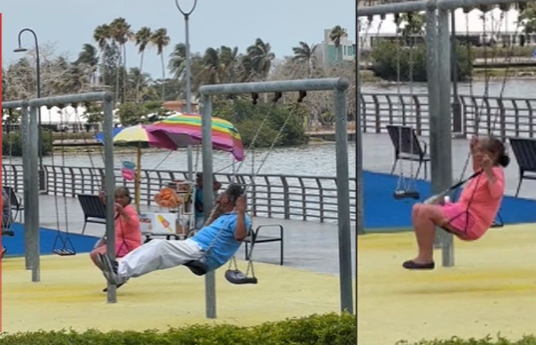Una pareja de ancianos se hizo viral luego de que en un acto espontáneo de alegría, los captaron en un columpio.