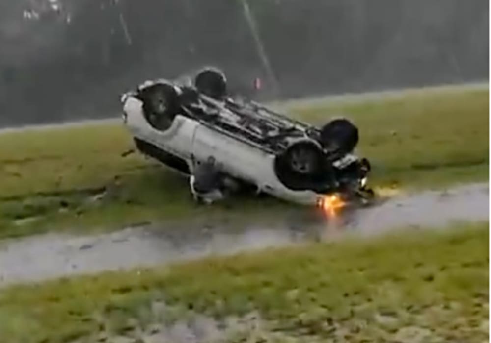 Brandon Clement, un cazador de tormentas, se detuvo en el medio de la carretera y ayudó a rescatar a una mujer que se encontraba atrapada dentro de su vehículo, volcado durante las fuertes lluvias provocadas por el huracán Debby en Carolina del Norte, Estados Unidos.