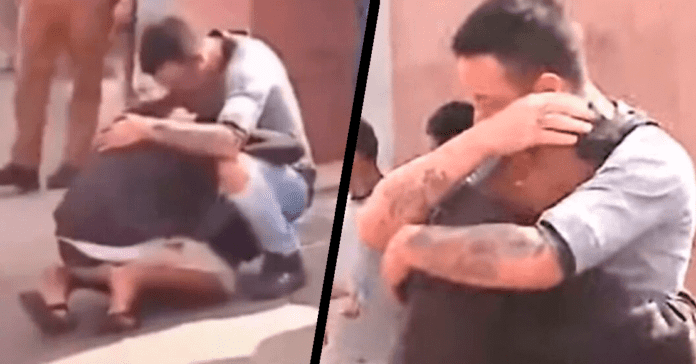 Pero cuando el padre llegó a la escena, su reacción no fue para nada violenta sino acudió a consolar al dueño del vehículo, quien no podía dejar de llorar.