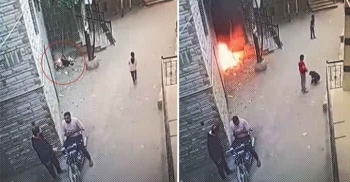 Estas son las imágenes del incidente captadas por una cámara de seguridad. Algo más que llama la atención es que aunque había personas en el sitio del incendio, estas no se dieron cuenta de ello al instante.