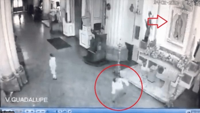 El agresor de la imágen de la Virgen de Guadalupe en la basílica de Guadalajara le arrojó piedras, y se volvió viral rápidamente.