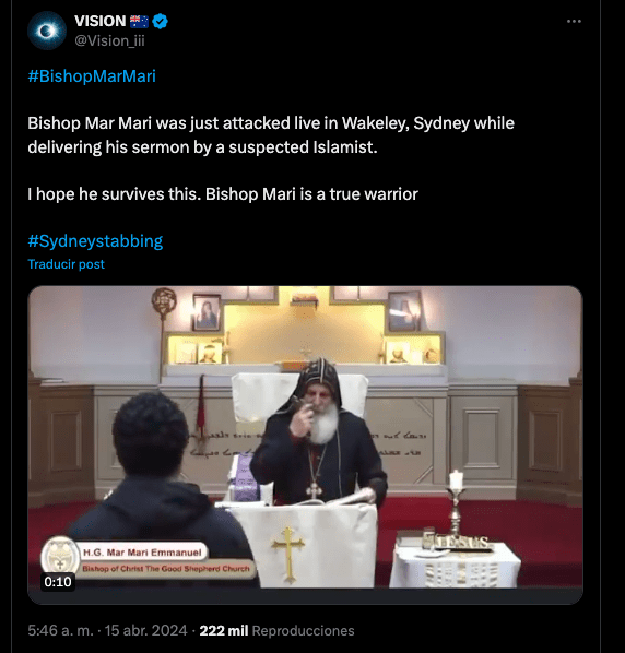 Según informes de medios locales, el incidente ocurrió en la iglesia de Cristo el Buen Pastor, donde el obispo Mar Mari Emmanuel estaba oficiando la misa. El obispo fue apuñalado varias veces pero sobrevivió al ataque, según los reportes de la prensa australiana. La investigación sobre el incidente está en curso.