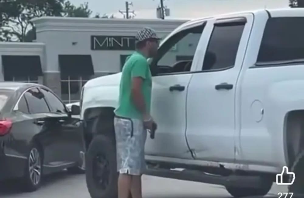 Las imágenes compartidas en las redes sociales muestran el momento en que Gavin Dasaur, de 29 años, se acerca a una camioneta Chevy blanca e intenta golpear al conductor mientras sostiene una pistola.