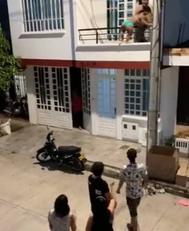 Un grupo de “buenos vecinos” ayudaron a la amante de este hombre a brincar por el balcón cuando la aparente esposa llegó a casa enojada.