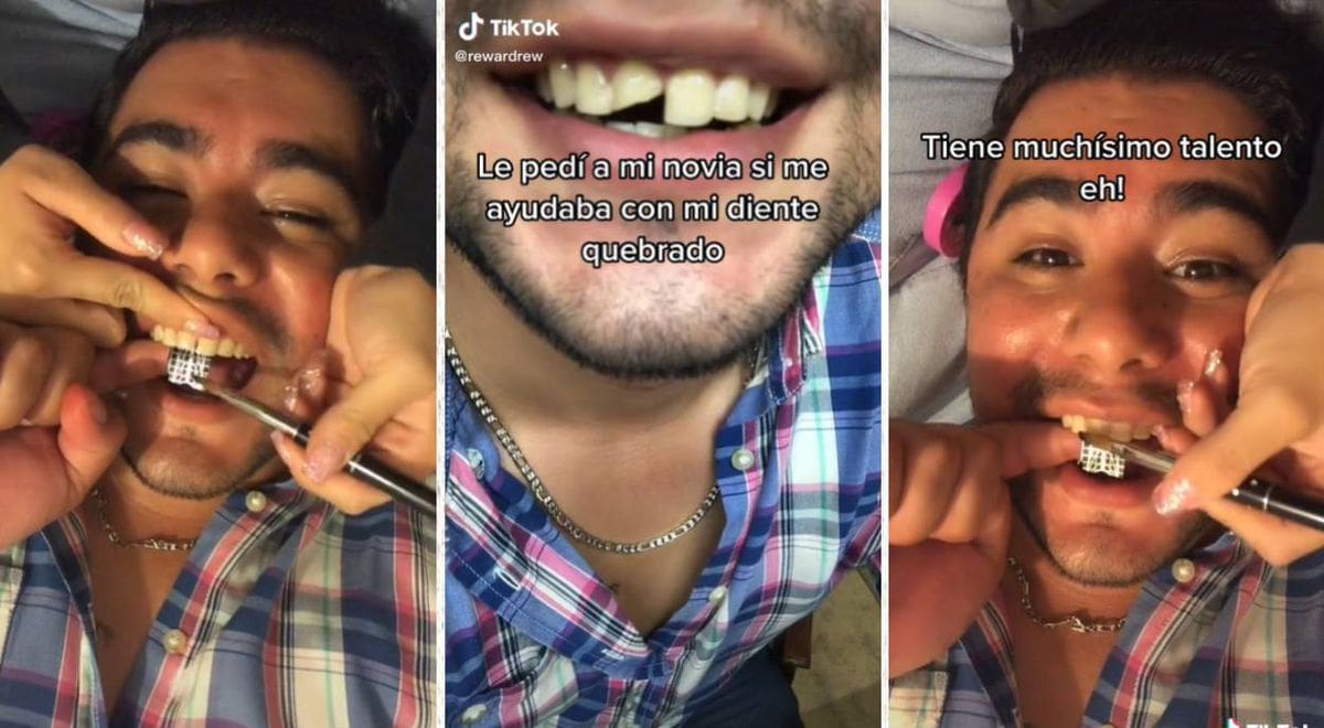El amor todo lo puede incluso reparar un diente roto sin ser odontólogo, cómo fue un caso que se hizo viral en TikTok, de una joven manicurista que logró con resina completar el diente que su novio por accidente se rompió.
