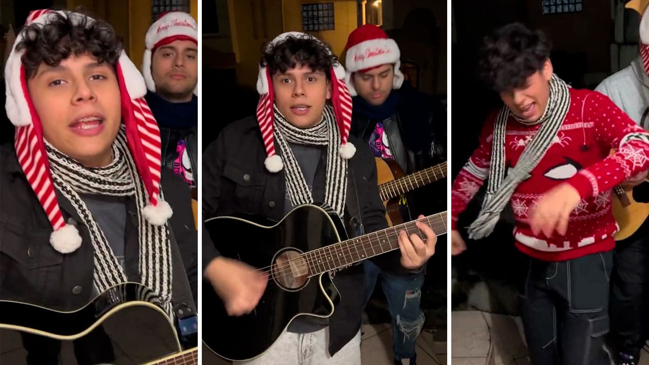 En el clip, la persona que está grabando abre la puerta de su casa y se sorprende al ver a los jóvenes con guitarras y gorros navideños. Entonces, uno de ellos dice: “¡Qué onda compadre! Venimos a tocarle los villancicos, son villancicos bélicos”.