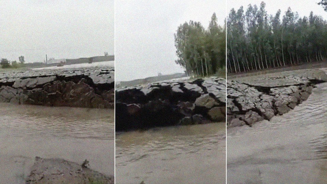En las imágenes se muestra lo que parece ser un lago donde aparece un gran pedazo de tierra sumergido en agua que se eleva repentinamente.