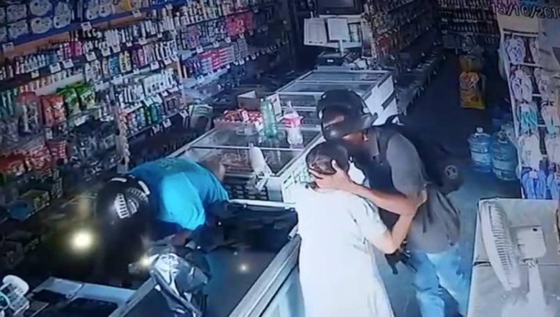 El video que circula en redes sociales muestra el momento justo en el que uno de los ladrones calma y besa en la frente a una anciana durante el asalto a una farmacia en Brasil.