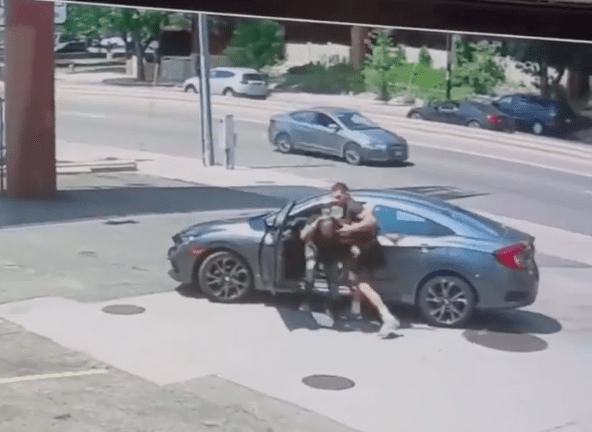 El ladrón no tuvo más opción, se dejó arrastrar, mientras el luchador de UFC le aplicaba lo que mejor sabe hacer: unos rodillazos en la cara.