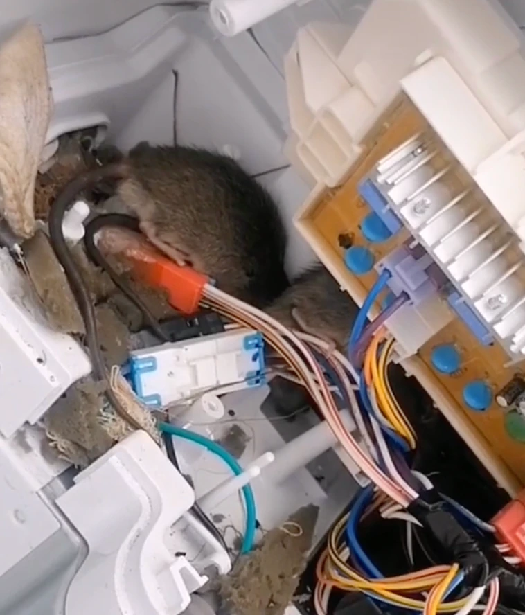 Descubren nido de ratas dentro de la lavadora