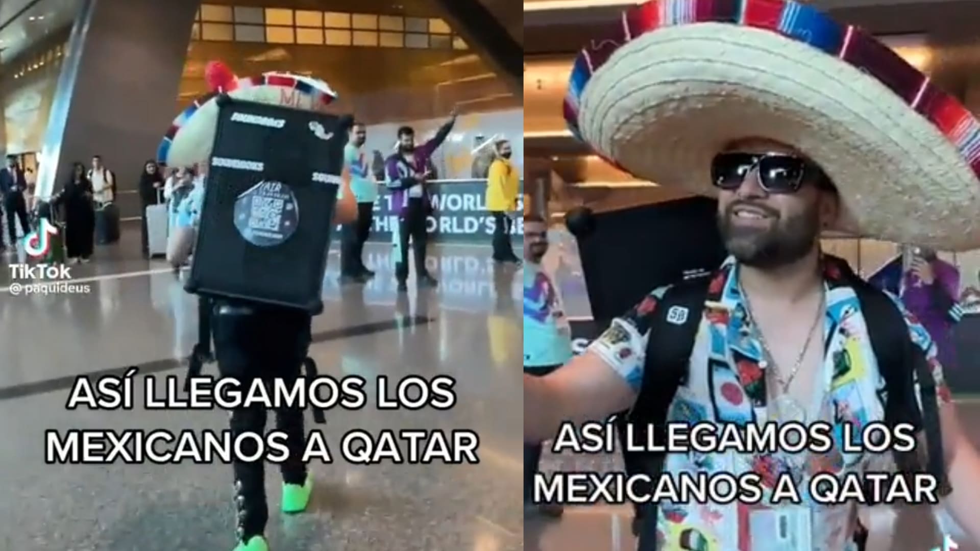 Así fue el caso de un aficionado, a quien grabaron llegando a Qatar con una bocina gigante al aeropuerto de Doha con “La canción del mariachi” a todo volumen.