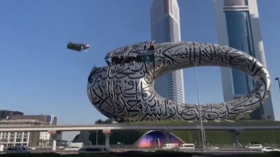 VIDEO: Nave ingresa al Museo del Futuro en Dubái y causa revuelo
