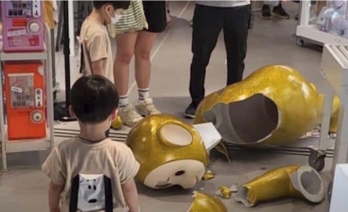 De acuerdo con medios internacionales, los hechos ocurrieron en una juguetería ubicada en Hong Kong, cuando un pequeño de 5 años se recargó y tiró accidentalmente al muñeco dorado de Los Teletubbies.