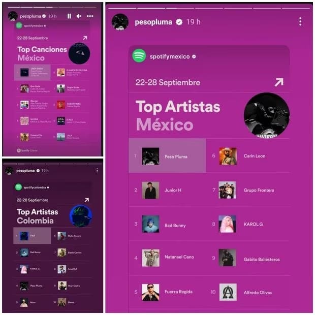 Peso Pluma ha conquistado las listas de popularidad en diversas plataformas de música, pese a las críticas de no llenar el Foro Sol, el cantante se mantiene positivo y presume sus éxitos a través de historias en Instagram.