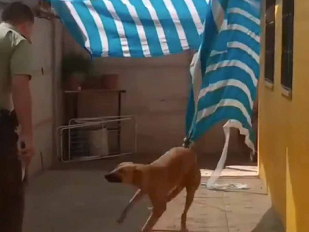 Un perrito se enredó con una tela en el patio de su casa al grado de quedar atrapado, sin embargo fue rescatado por la policía local de Chile.