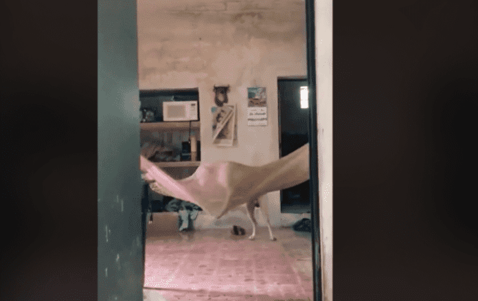 En un video el audaz perrito dejó deslumbrados a los internautas por su increíble habilidad para subirse a una hamaca y se ha hecho viral.