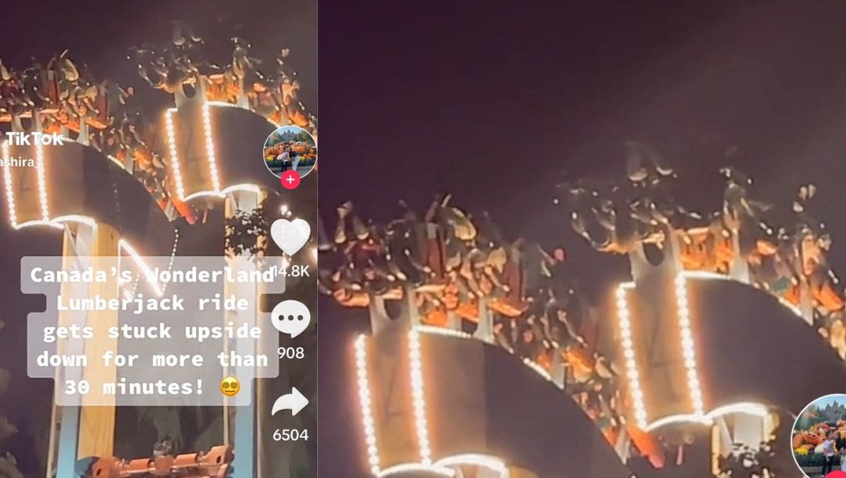 El hecho ocurrió en el Canada’s Wonderland, específicamente en el juego llamado El Martillo, donde aproximadamente un grupo de más de 10 personas vivieron momentos de angustia y desesperación por el tiempo en el que estuvieron en una posición difícil.