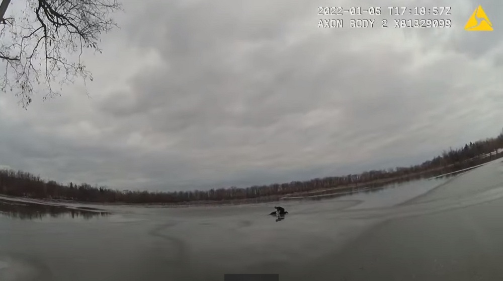 Un oficial de policía de Estados Unidos, se ganó la estima de cientos de internautas que observaron a través de un vídeo cómo salvó la vida de una perrita que cayó a un lago parcialmente congelado.