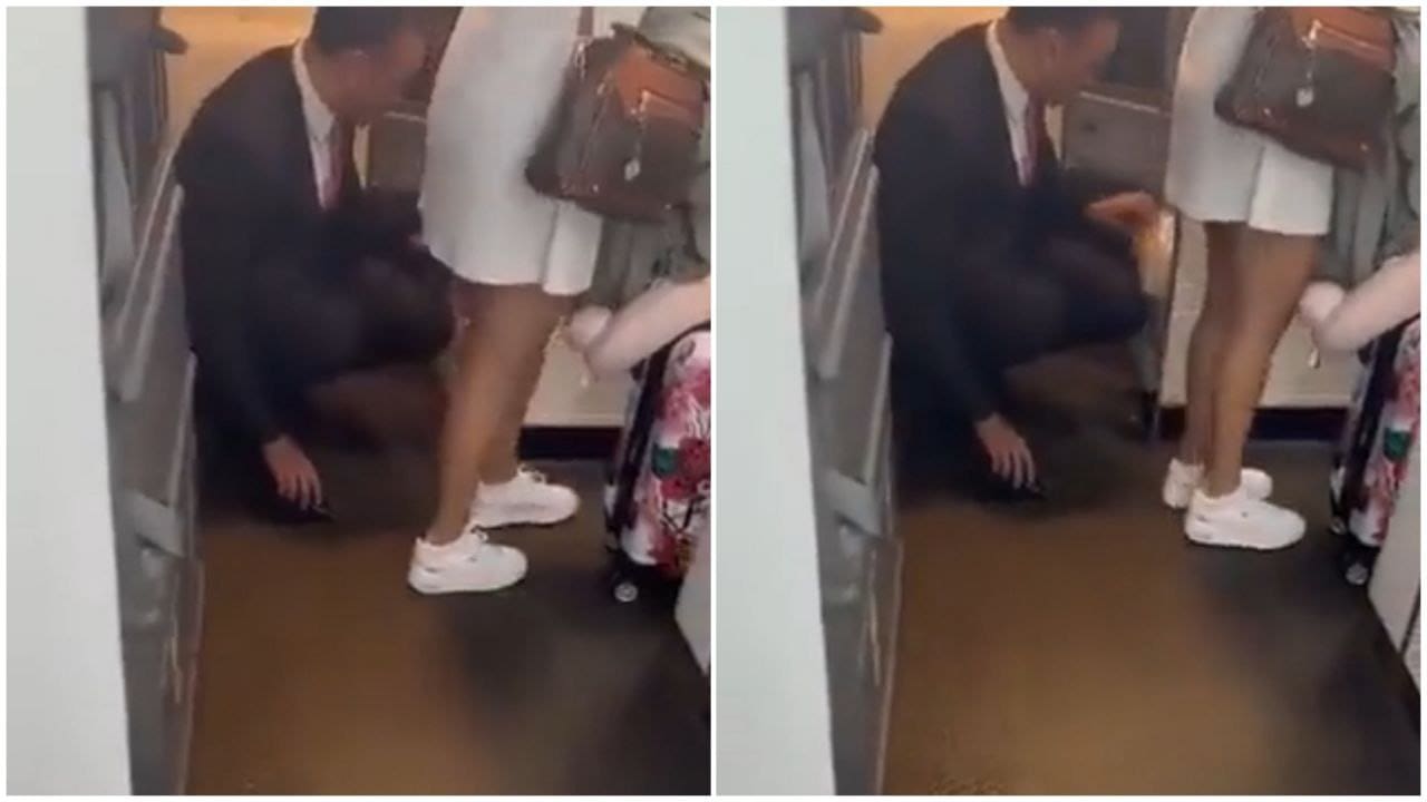 En el video se aprecia que el trabajador de la línea aérea de nuestro país estaba agachado “acomodando” algunas cosas de lo que aparentemente podría ser del servicio de los utensilios para brindar los alimentos y bebidas del vuelo.