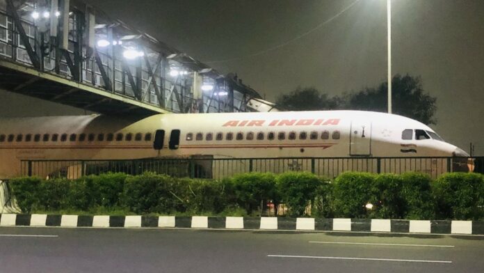 En la India, un avión de la compañía Air India se quedó atrapado debajo de un puente peatonal cerca del Aeropuerto Internacional de Delhi.